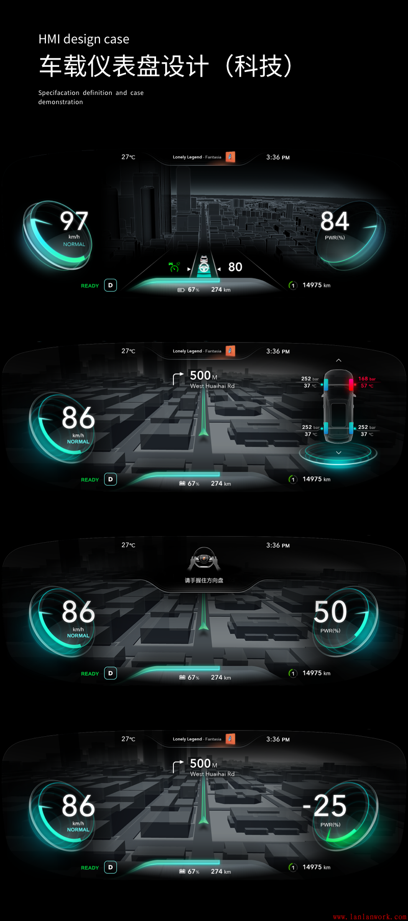 視覺層面上,一般來說識(shí)別度比較重要,能更直觀的展示模型可視化信息就好,但是可視化信息的表現(xiàn)形式可以作為視覺設(shè)計(jì)的重點(diǎn),可以是線性模型,也可以是白模等等,要去契合車機(jī)的主題、顏色、概念,又要達(dá)到可視化的要求。