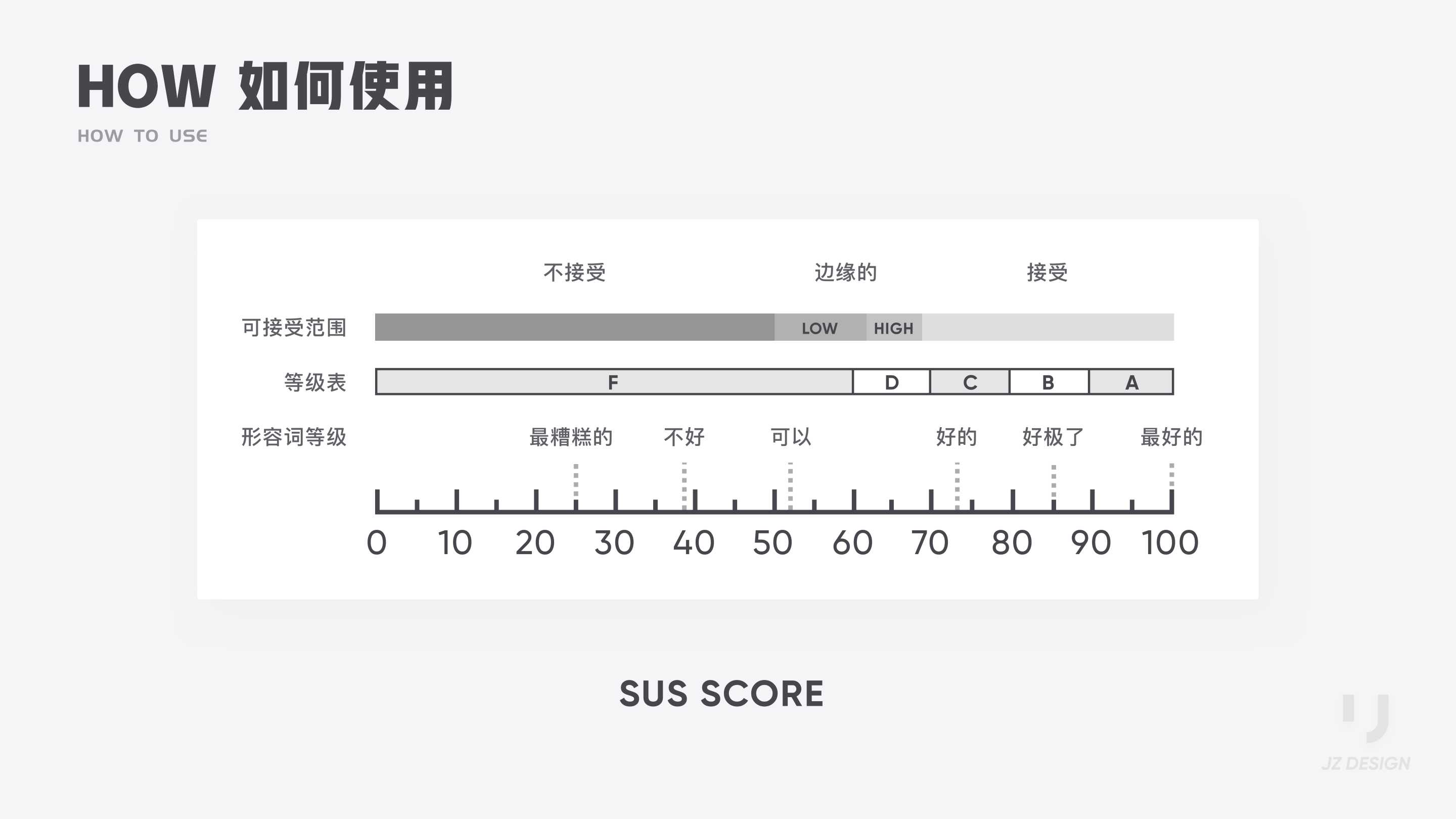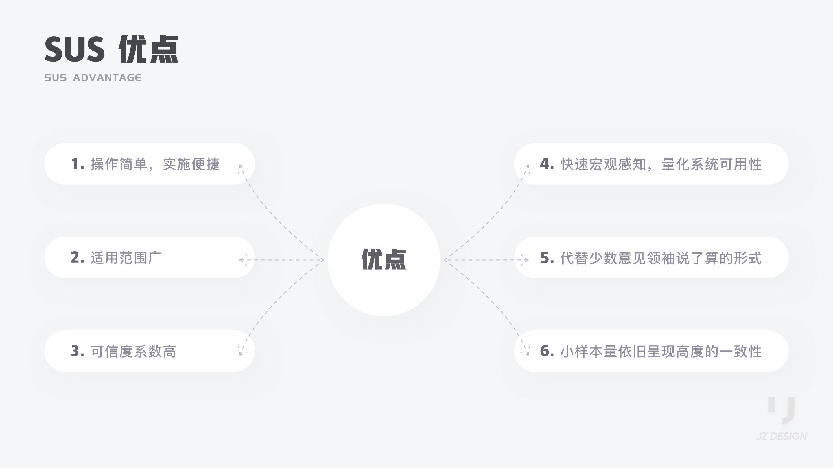 SUS 全稱(chēng) System Usability Scale ,系統(tǒng)可用性量表。SUS最初是Brooke于1986年編制,可以科學(xué)地量化用戶(hù)體驗(yàn),用于完成一系列任務(wù)場(chǎng)景后,對(duì)產(chǎn)品或系統(tǒng)整體宏觀(guān)的感知可用性測(cè)量。